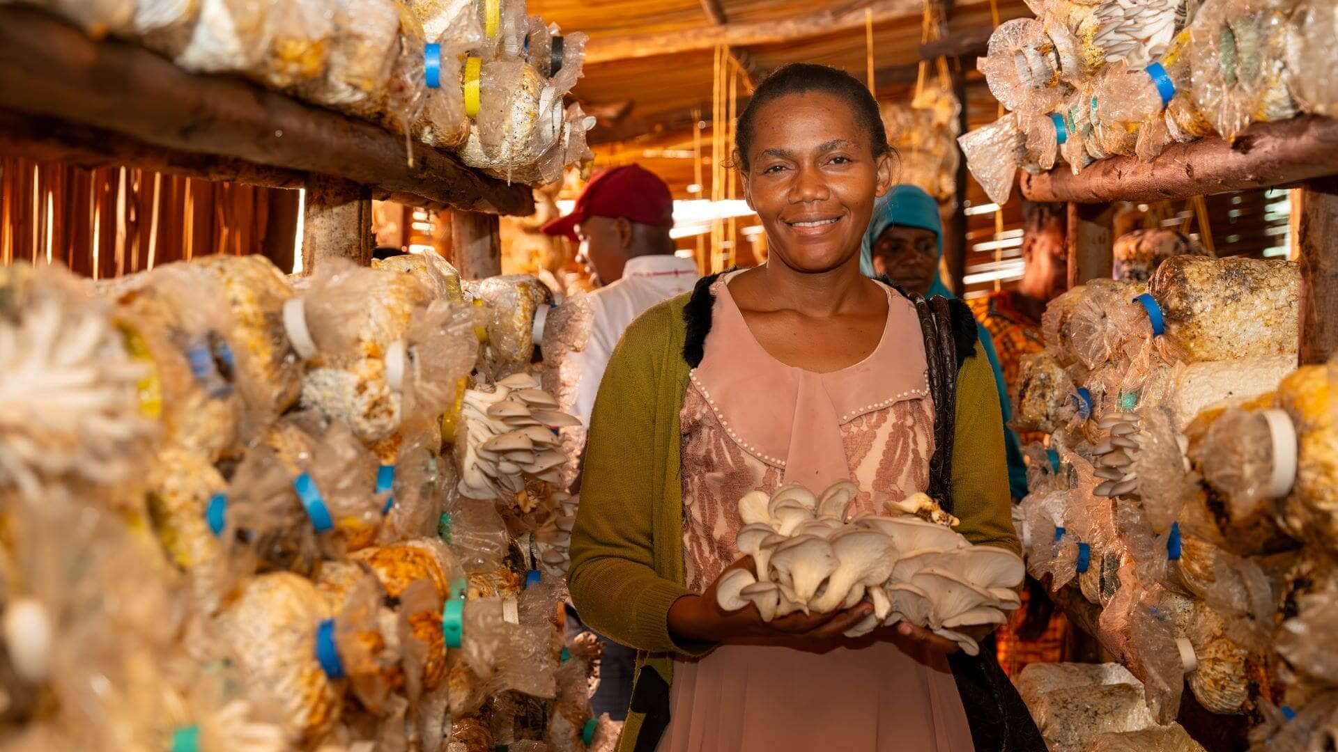 Mushroom cultivation, using agricultural waste such as coffee husks and cotton husks to produce a high-value, nutritious food product.