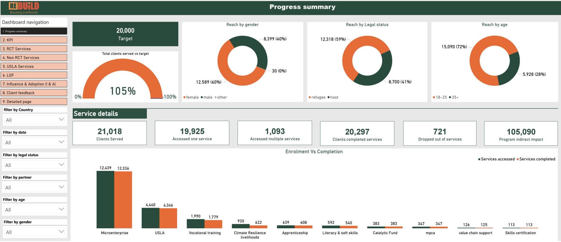 Our target was to reach 20,000 urban refugees and host community members—including women, men, and youth. We exceeded this, reaching 21,018 clients and achieving an impressive 105% of our goal.